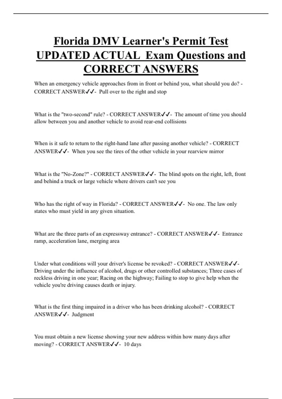 Who has the right of way in Florida? - CORRECT ANSWER✔✔- No one. The law only