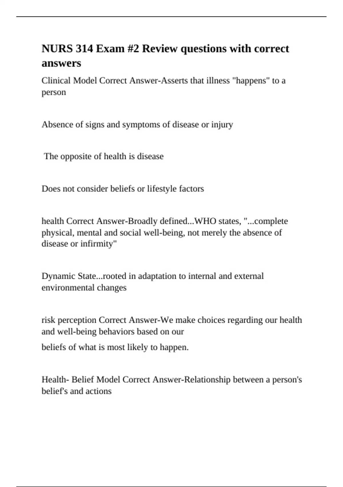 High-Level Wellness Model Correct Answer-Sees health as on-going