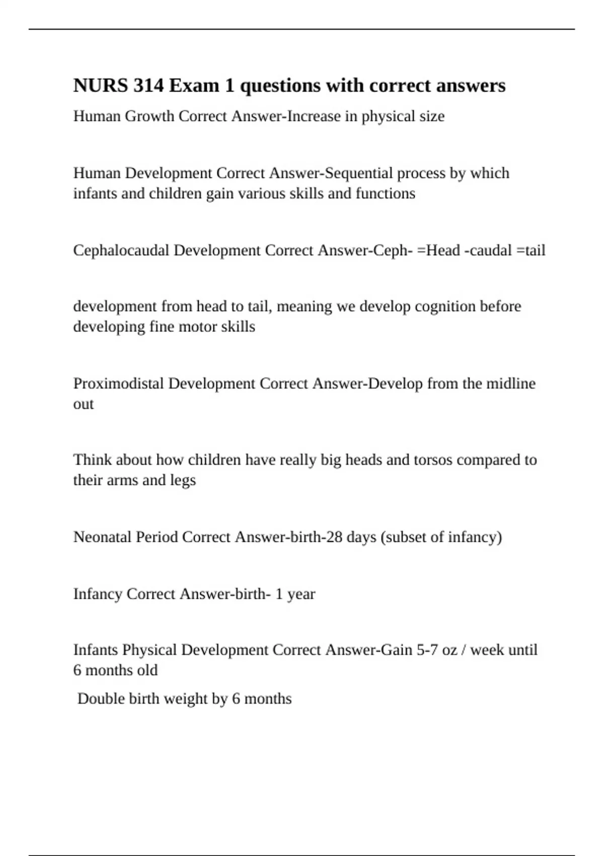 Infancy Correct Answer-birth- 1 year