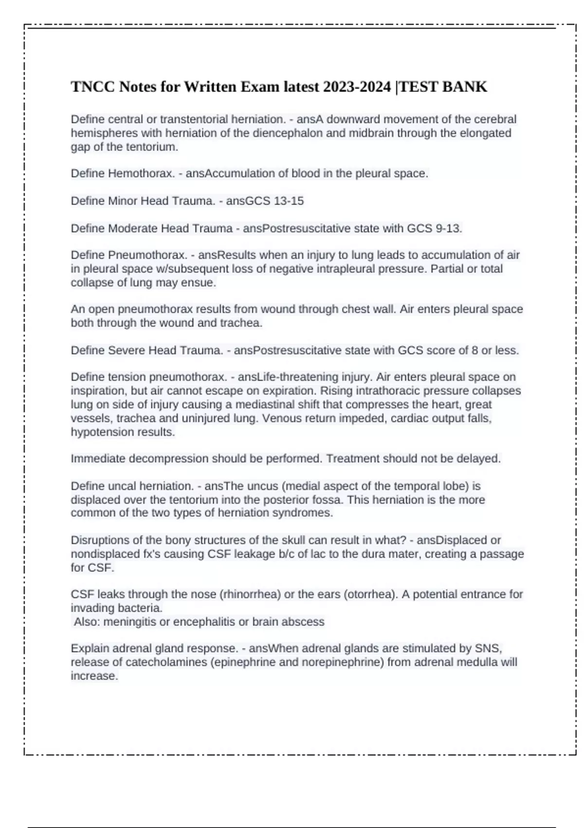 ,TNCC Notes for Written Exam latest 2023-2024 |TEST BANK