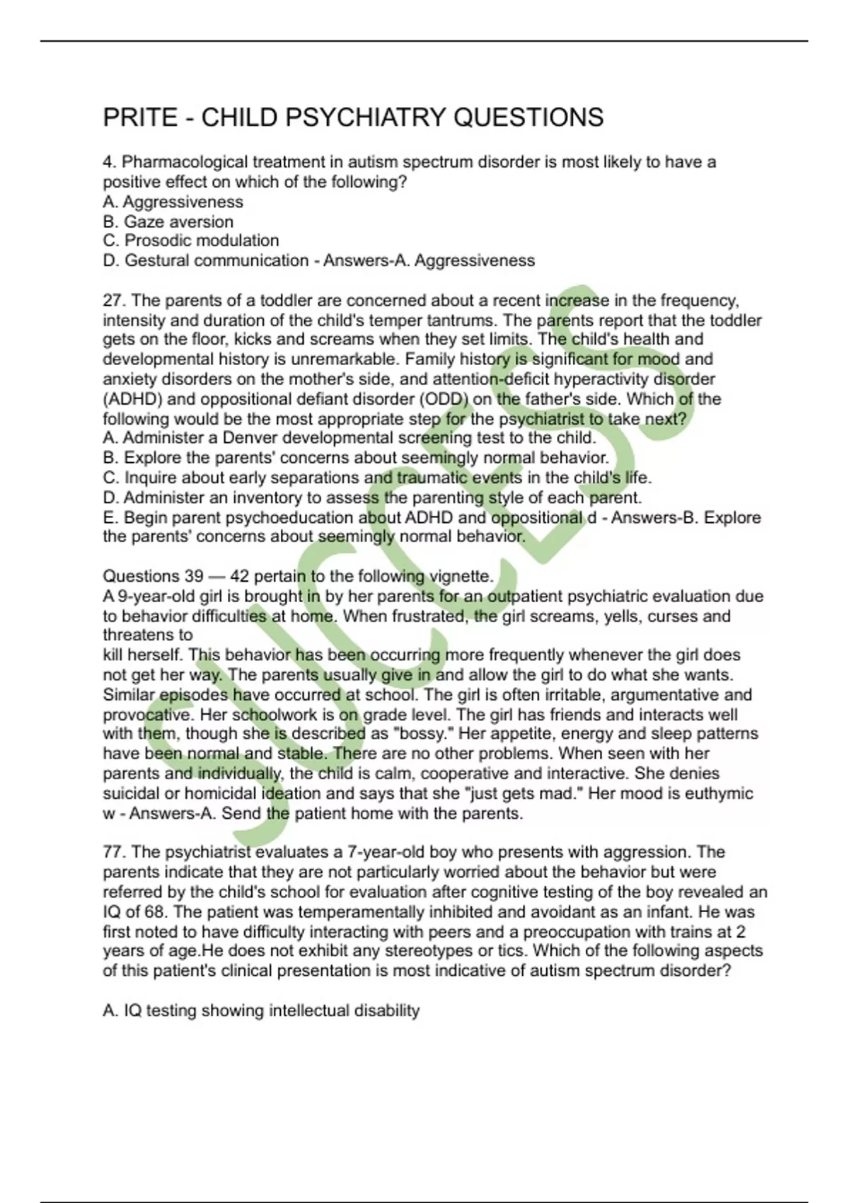 PRITE - CHILD PSYCHIATRY QUESTIONS