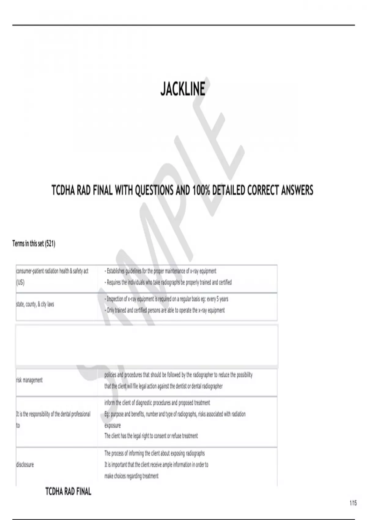 TCDHA RAD FINAL WITH QUESTIONS AND 100% DETAILED CORRECT ANSWERS