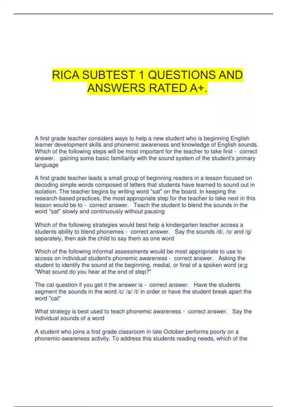 What strategy is best used to teach phonemic awareness - correct answer. Say the