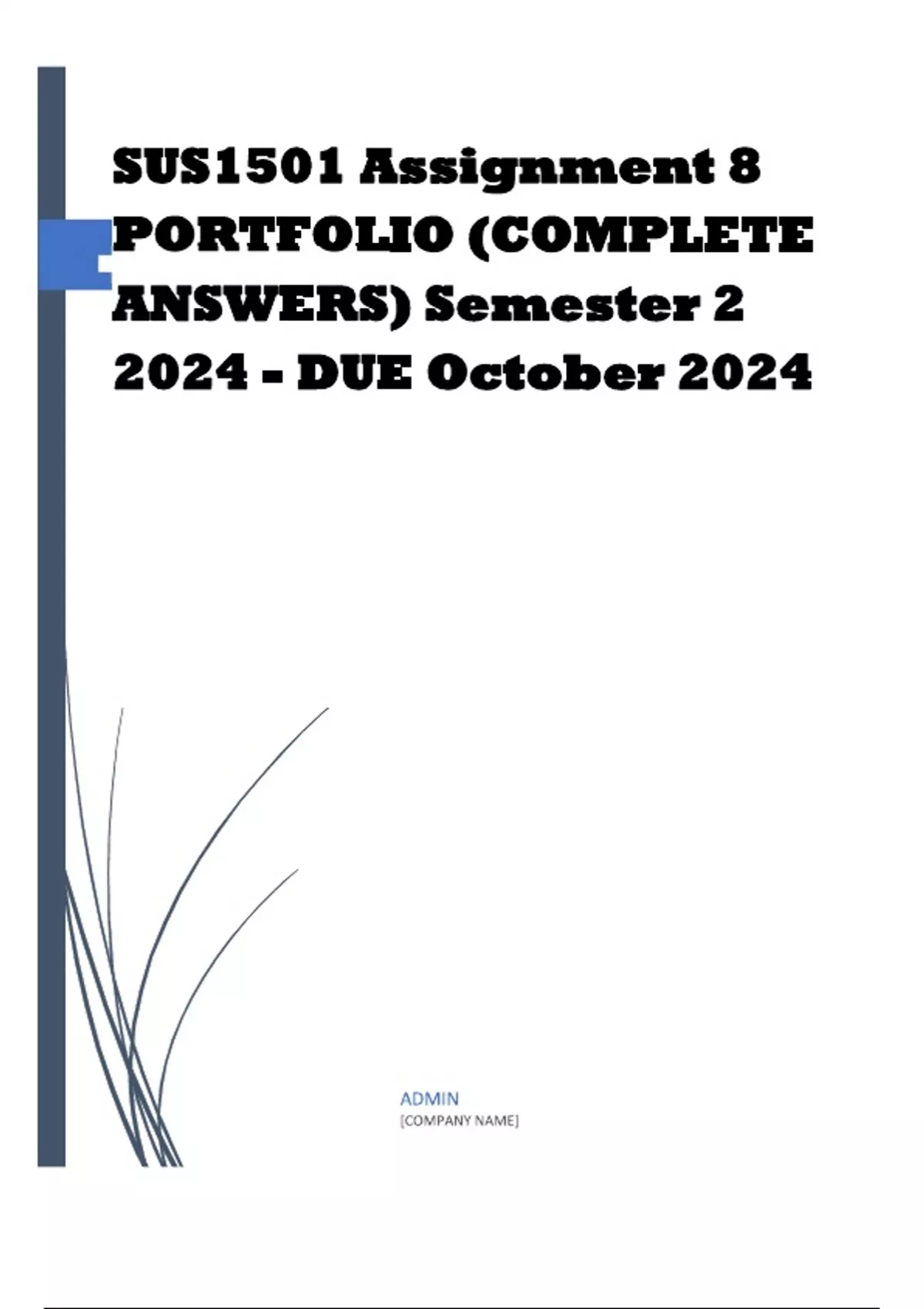 SUS1501 Assignment 8 PORTFOLIO (DETAILED ANSWERS) Semester 2 2024 Course Sustainability and Greed Institution University Of South Africa Book Heat, Greed and Human Need