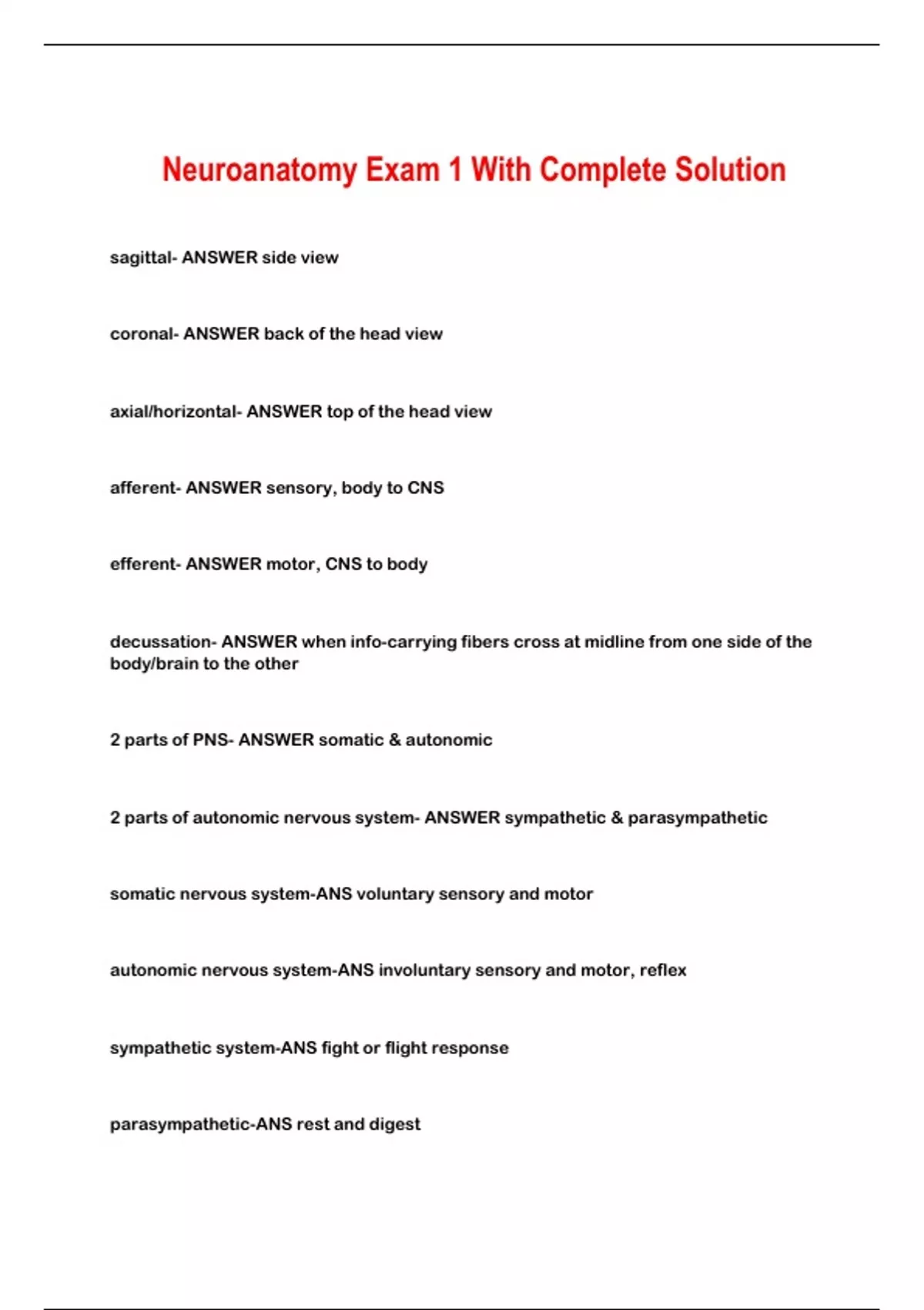 Neuroanatomy Exam 1 With Complete Solution