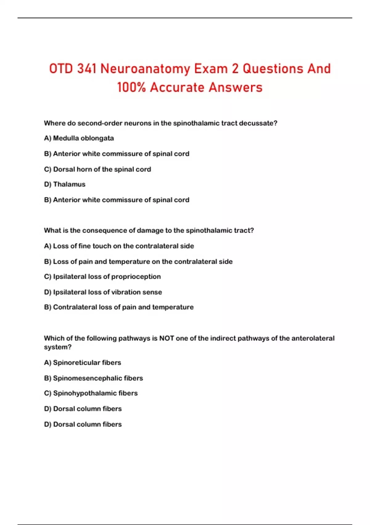 OTD 341 Neuroanatomy Exam 2 Questions And 100% Accurate Answers...