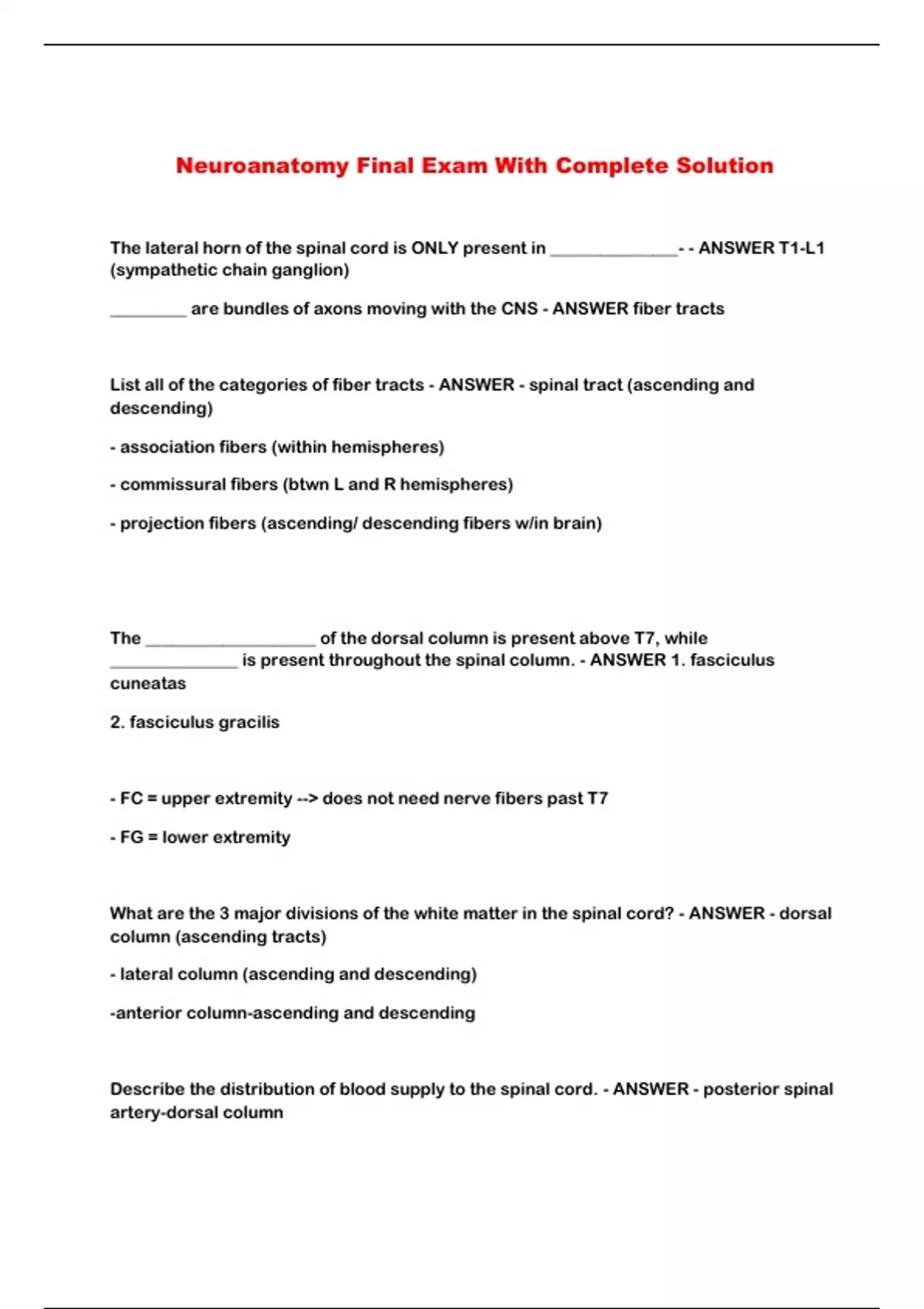 _______________ is present throughout the spinal column. - ANSWER 1. fasciculus