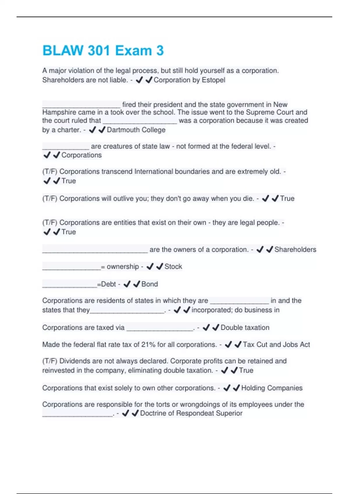 Corporations are taxed via _________________. - ✔️✔️Double taxation