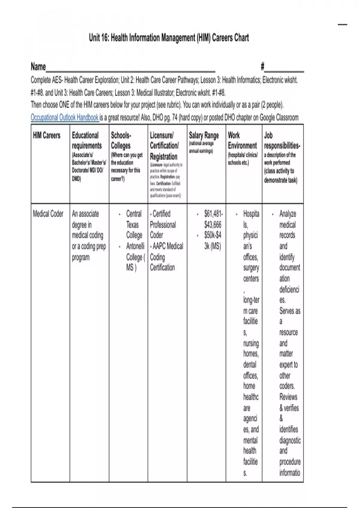 Then choose ONE of the HIM careers below for your project (see rubric). You can work individually or as a pair (2 people).