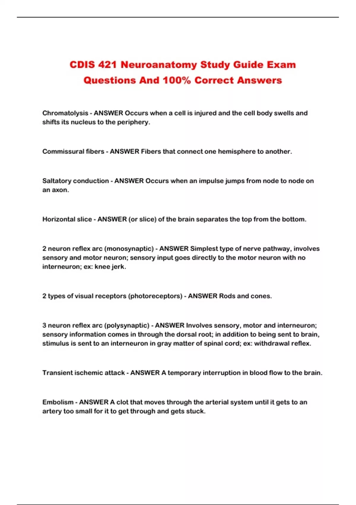 CDIS 421 Neuroanatomy Study Guide Exam