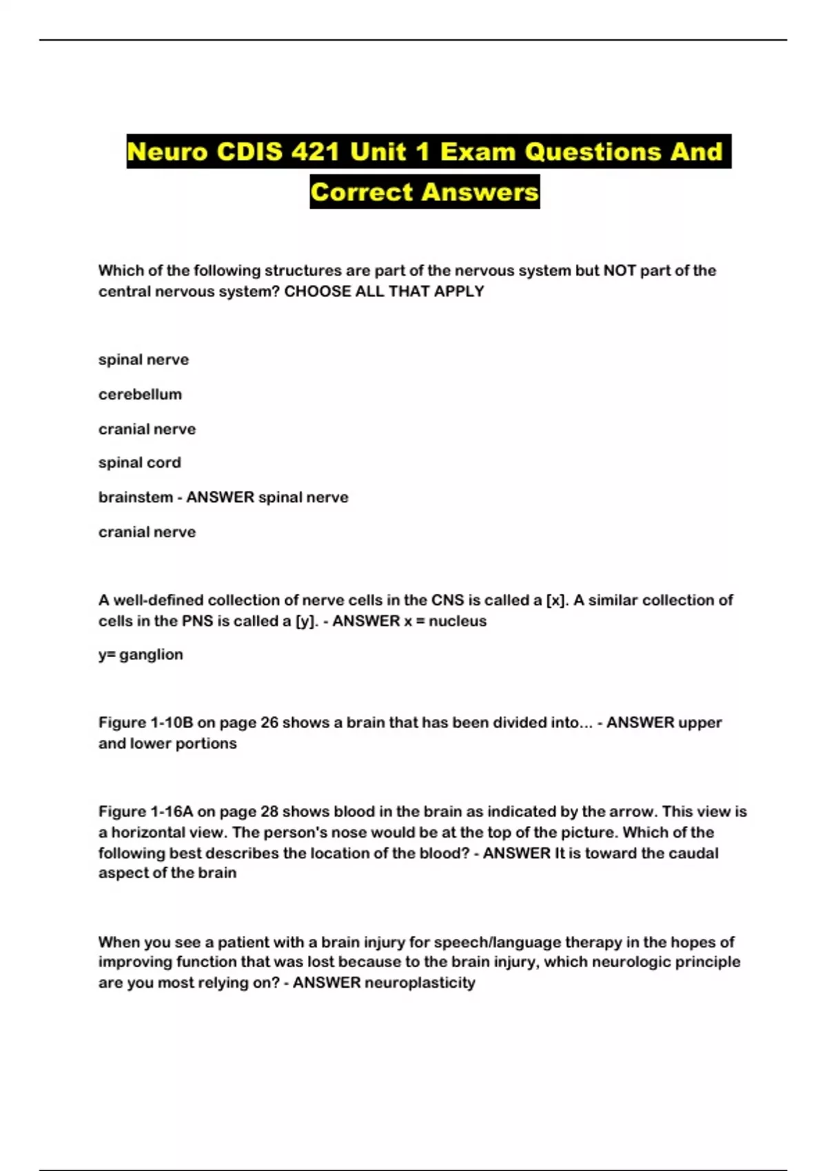 Neuro CDIS 421 Unit 1 Exam Questions And Correct Answers...