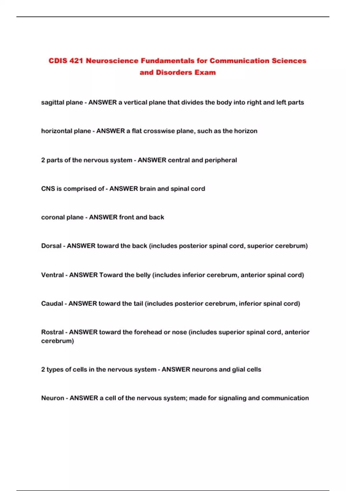 CDIS 421 Neuroscience Fundamentals for Communication Sciences and Disorders Exam...
