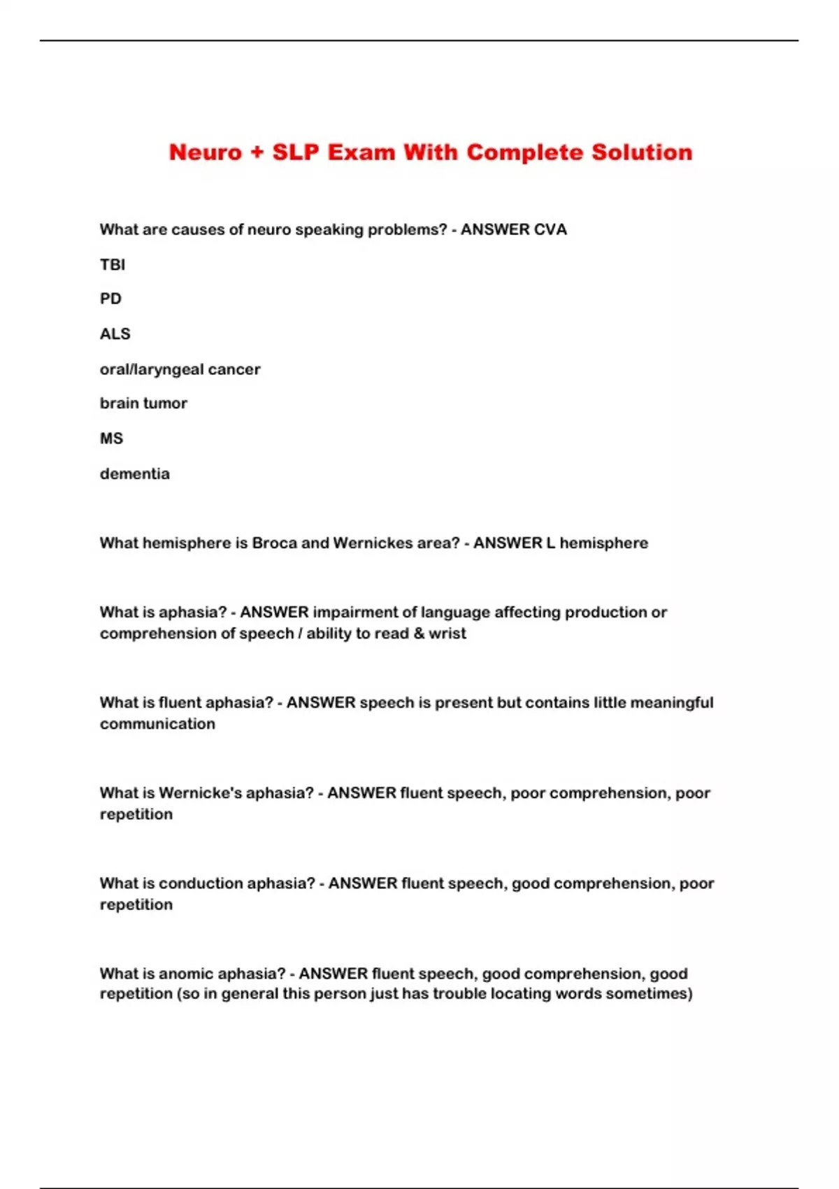 Neuro + SLP Exam With Complete Solution