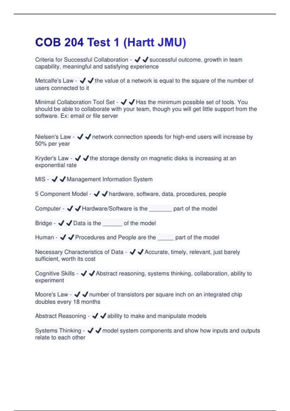 5 Component Model - ✔️✔️hardware, software, data, procedures, people