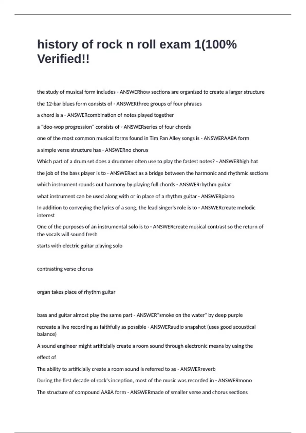 history of rock n roll exam 1(100% Verified!!