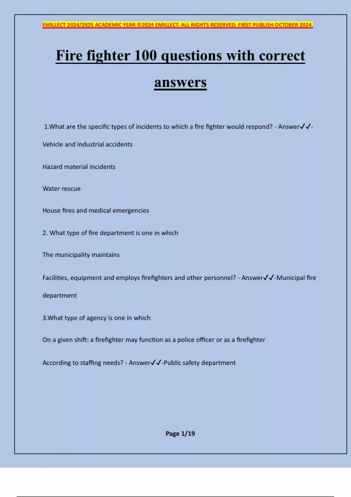 Fire fighter 100 questions with correct