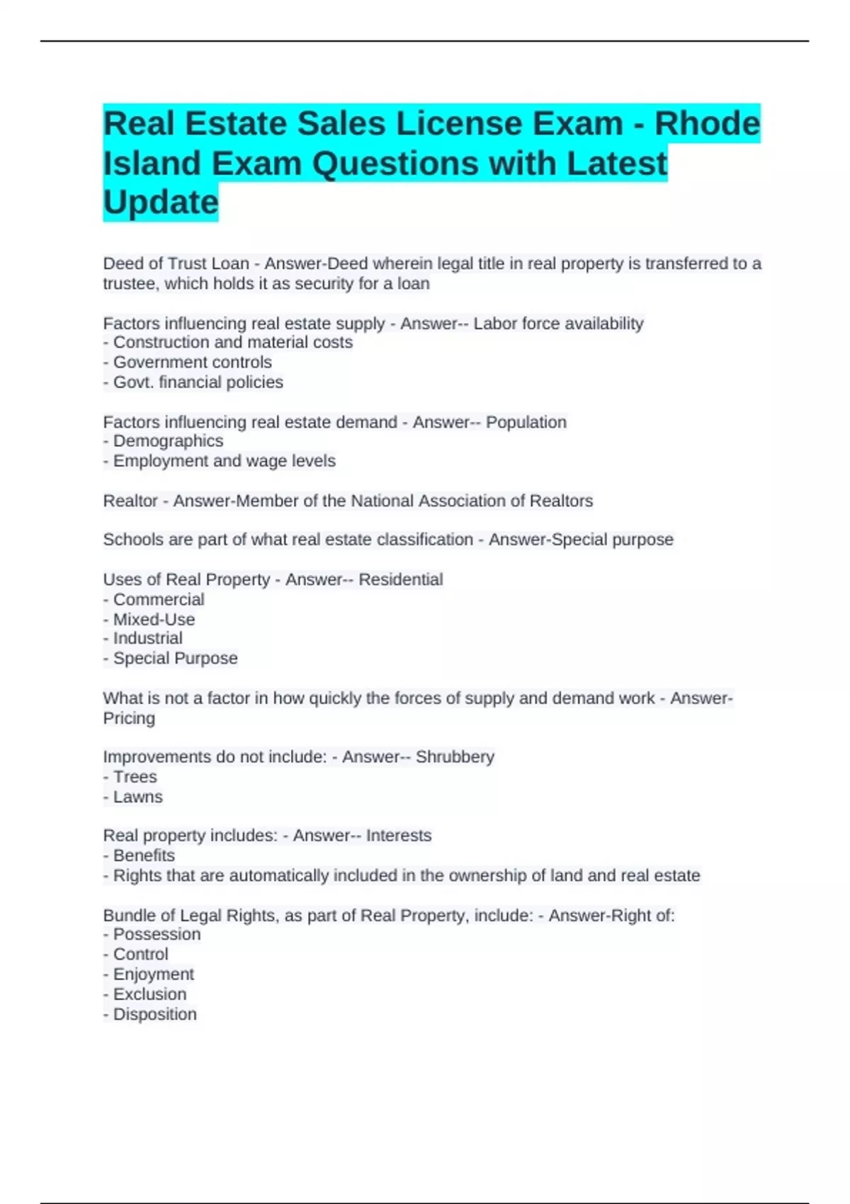 Bundle of Legal Rights, as part of Real Property, include: - Answer-Right of: