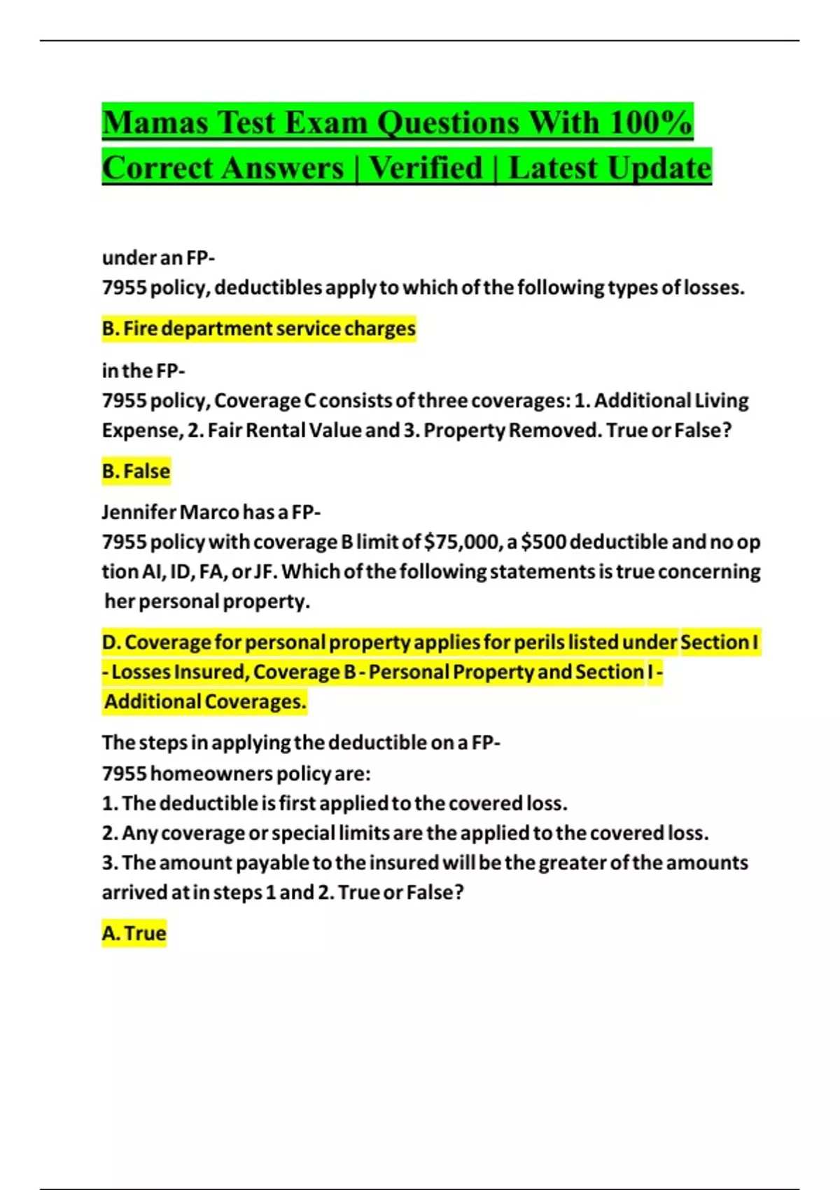Mamas Test Exam Questions With 100% Correct Answers | Verified | Latest Update