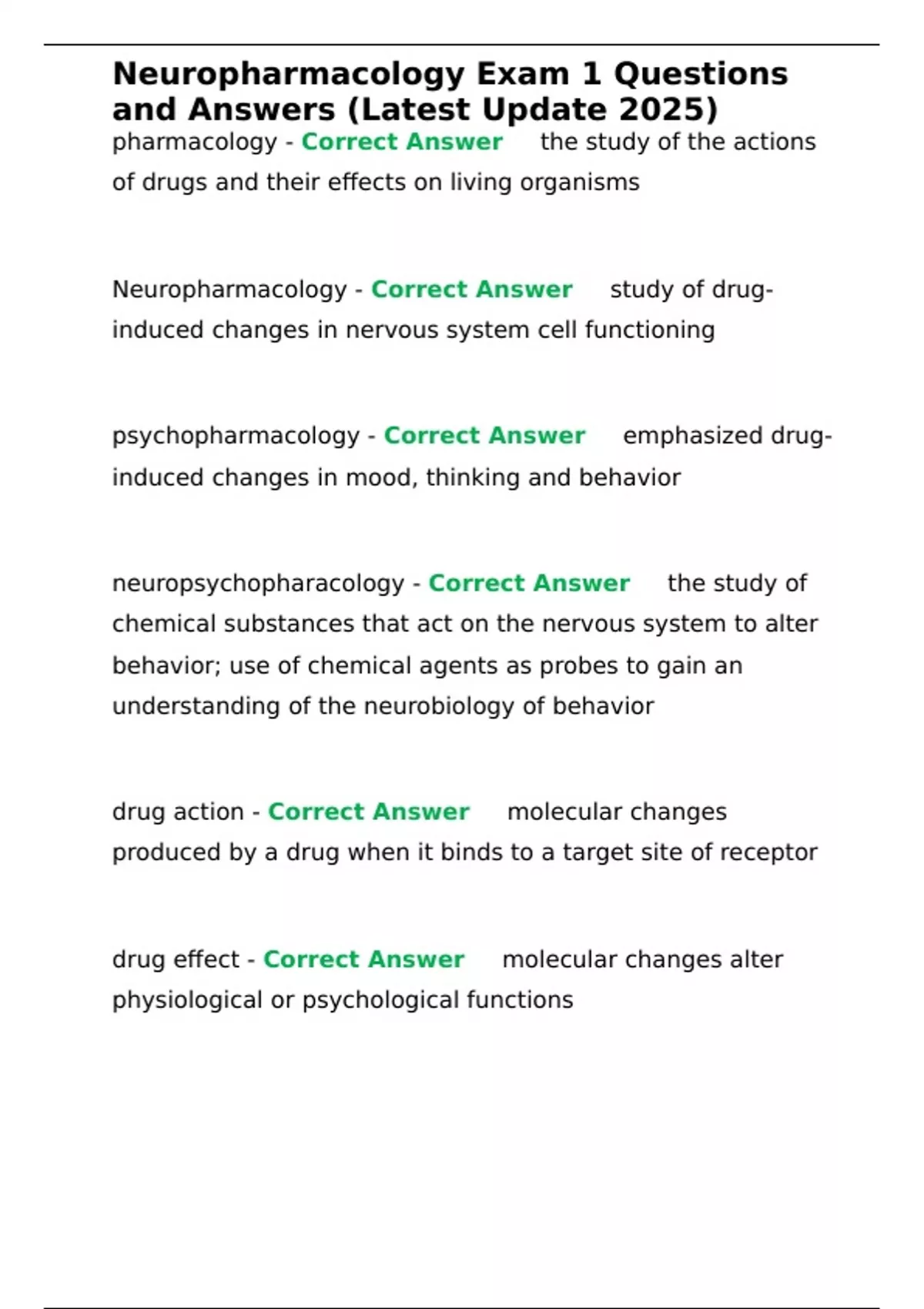 Neuropharmacology - Correct Answer ✅study of drug-