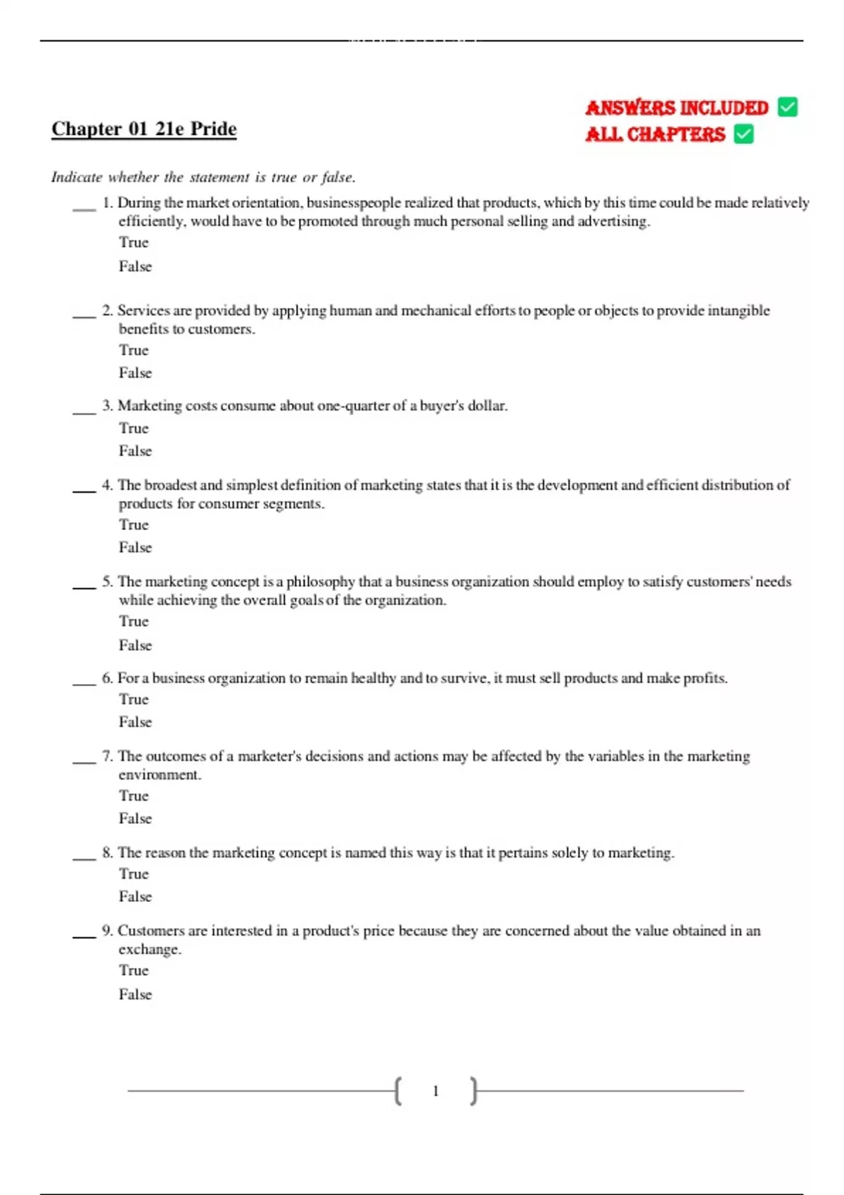 23. The actual physical production of goods is a marketing activity.