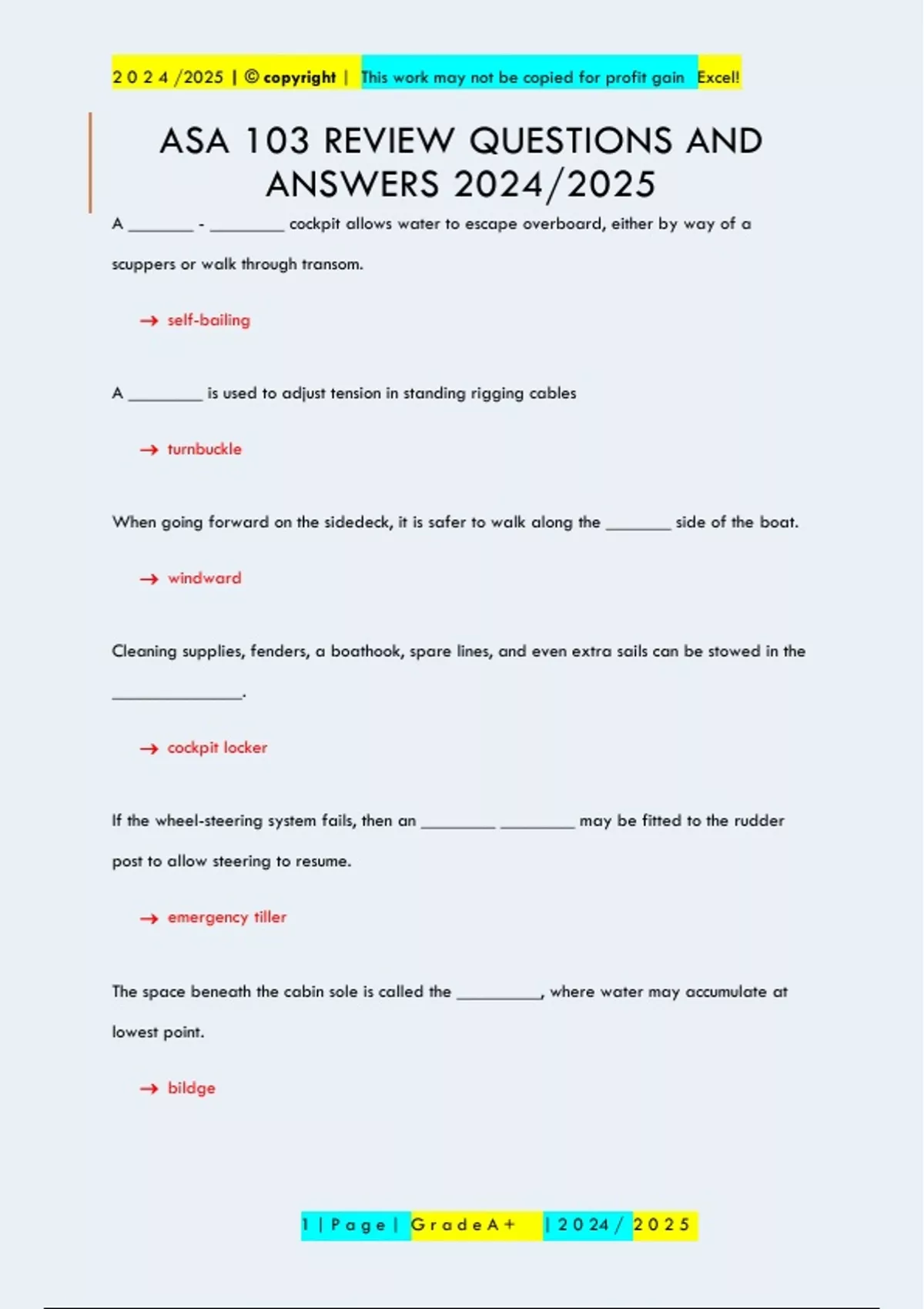 ASA 103 REVIEW QUESTIONS AND