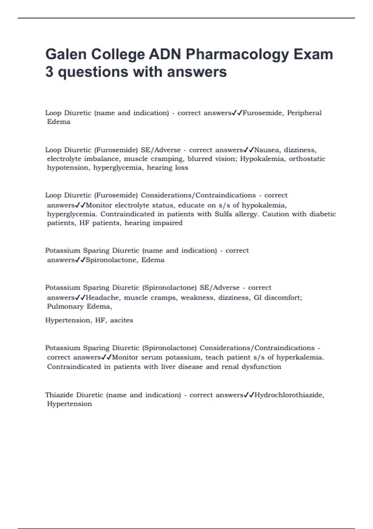 |answers✔✔Spironolactone, |Edema