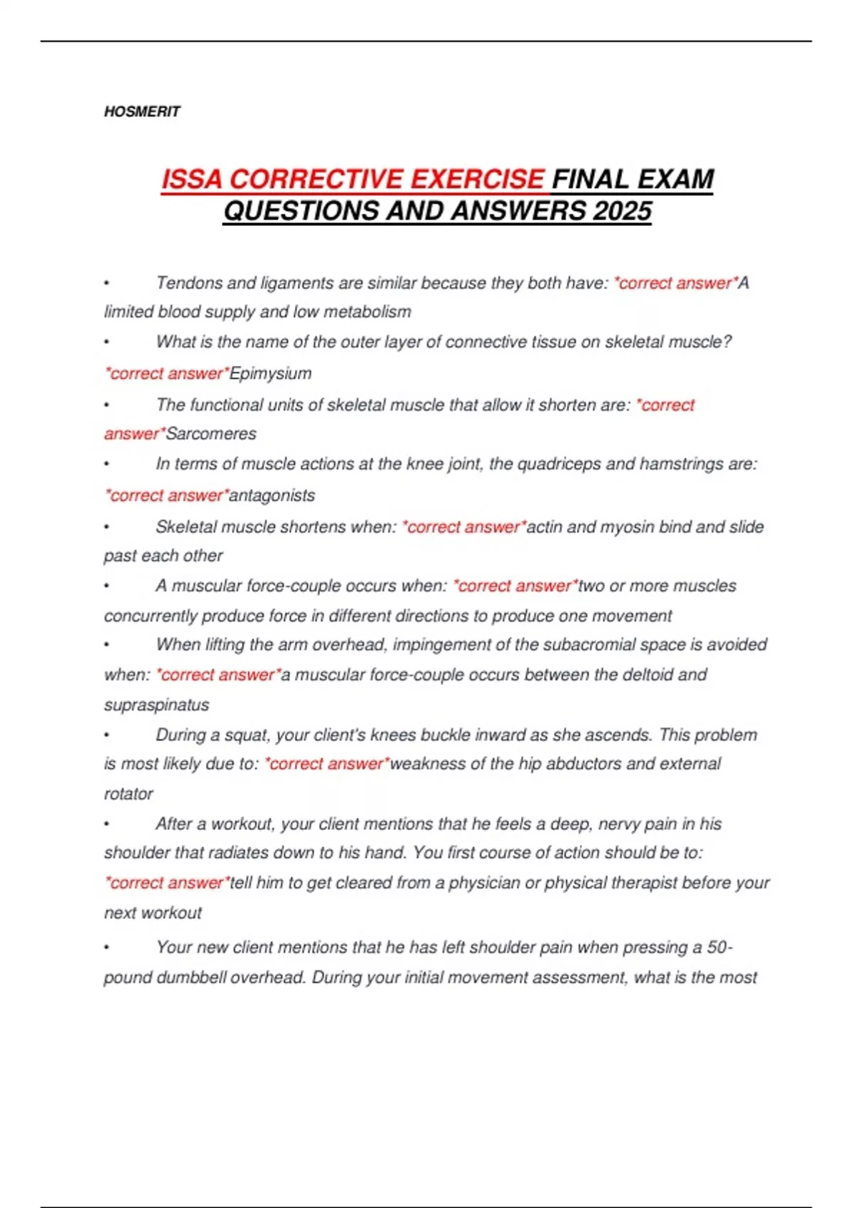 ISSA CORRECTIVE EXERCISE FINAL EXAM