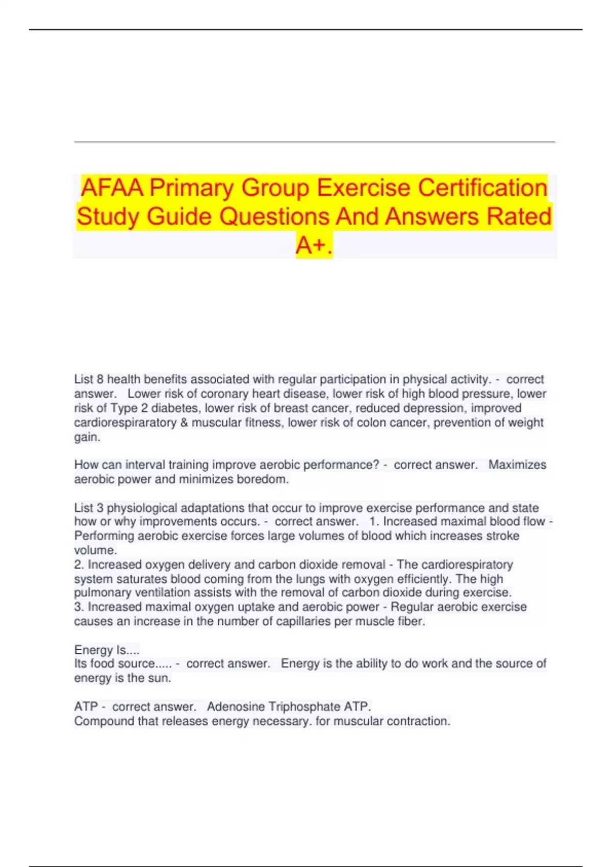 ATP - correct answer. Adenosine Triphosphate ATP.