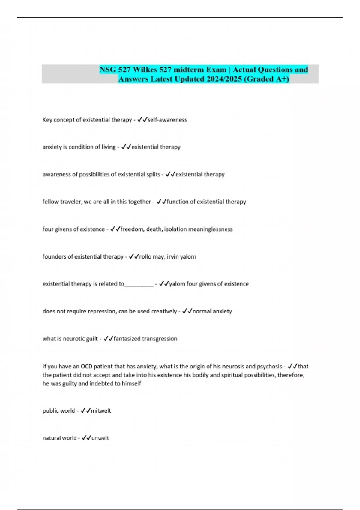 NSG 527 Wilkes 527 midterm Exam | Actual Questions and Answers Latest Updated 2024/2025 (Graded A+)