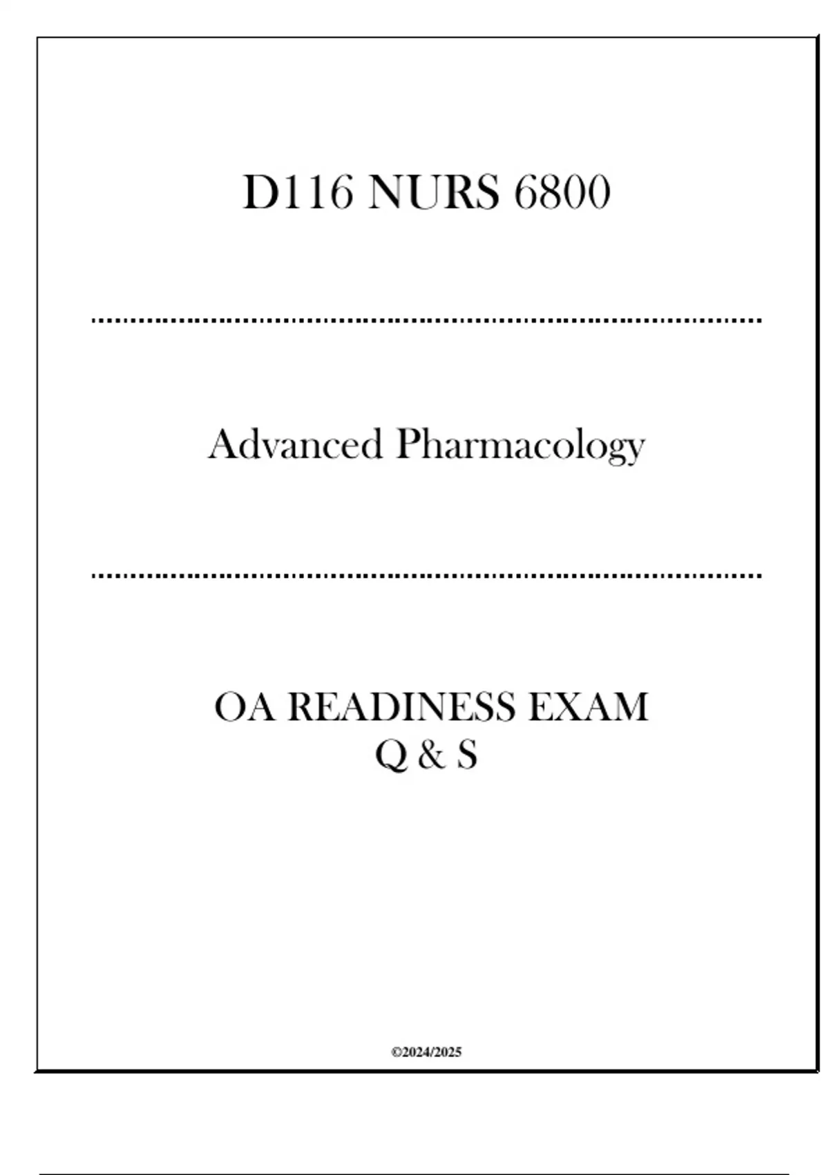 (D116-NURS 6800) OA Readiness Exam Q & S - Advanced Pharmacology(D116-NURS 6800) OA Readiness Exam Q & S - Advanced Pharmacology(D116-NURS 6800) OA Readiness Exam Q & S - Advanced Pharmacology