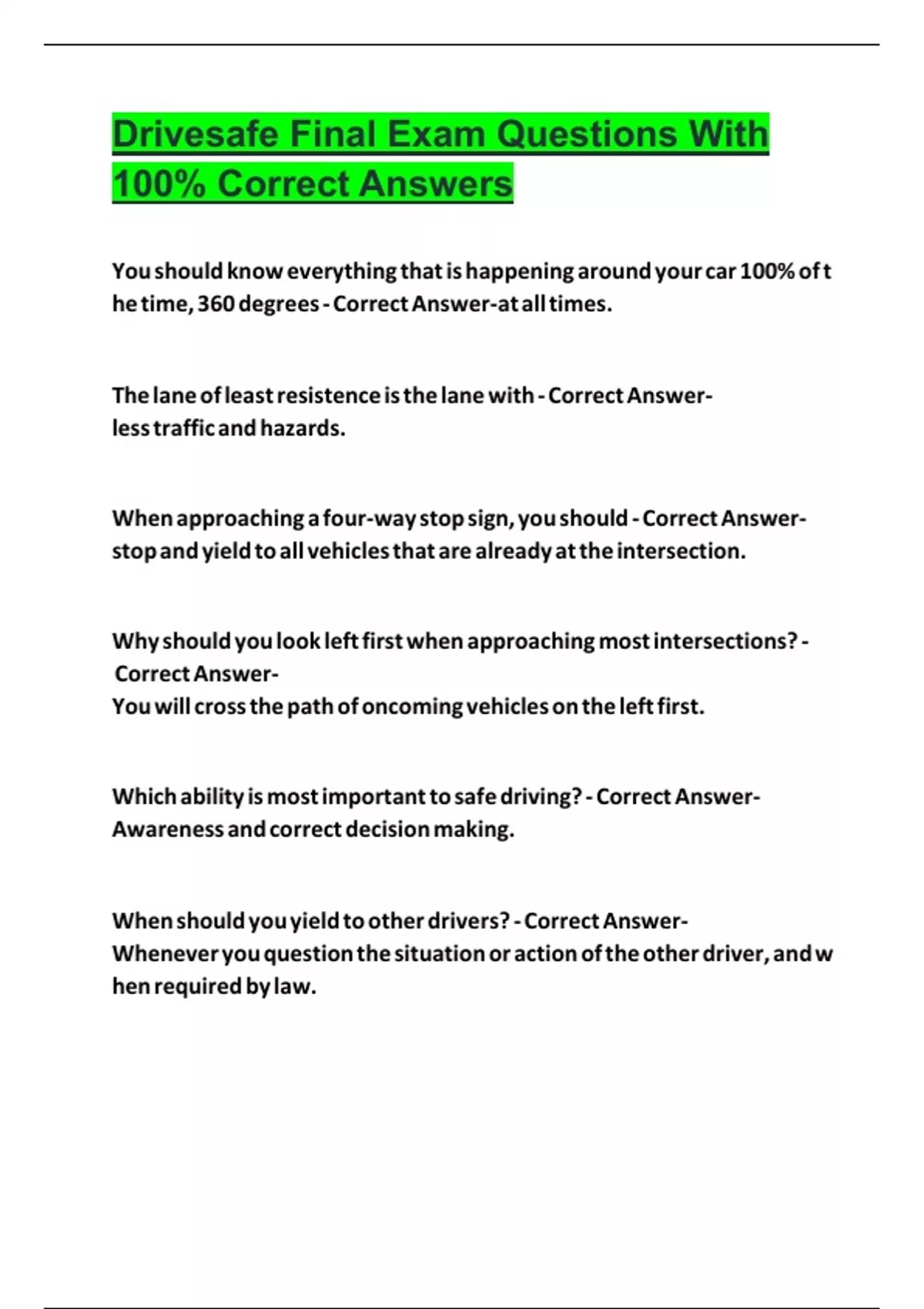 Drivesafe Final Exam Questions With 100% Correct Answers