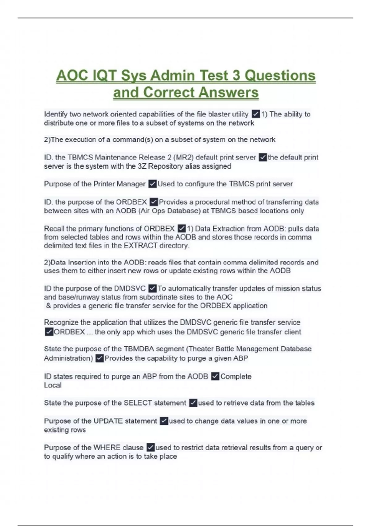 AOC IQT SysAdmin Course Block 2 Questions and Verified Answers