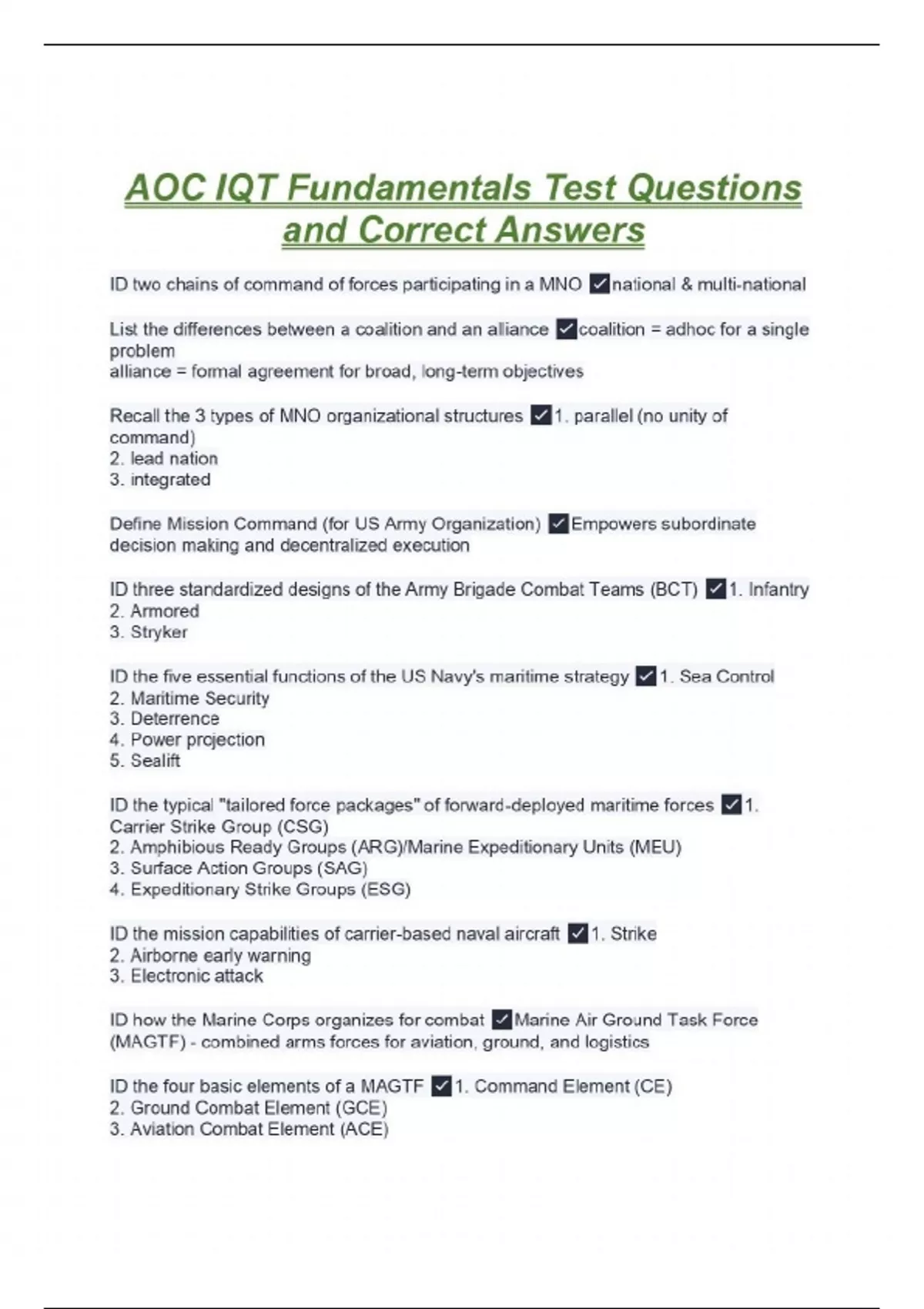 AOC IQT Fundamentals Test Questions and Correct Answers