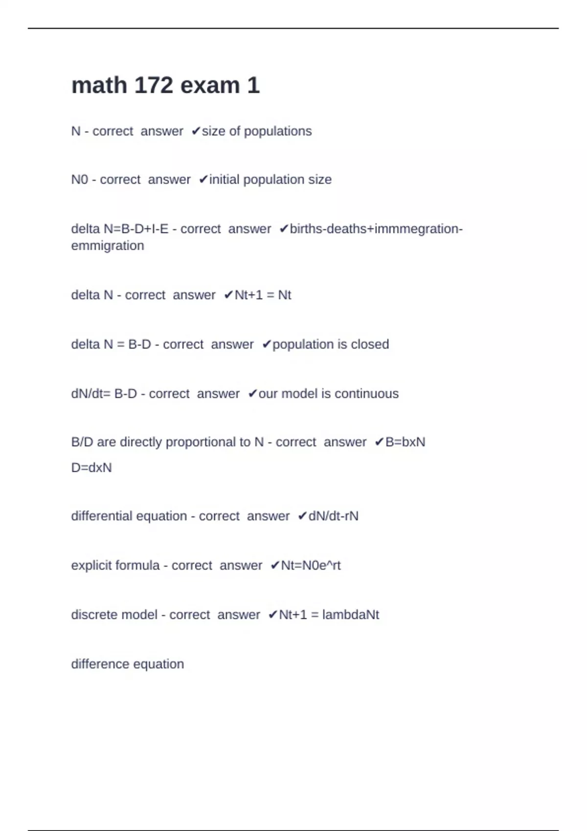 delta N=B-D+I-E - correct answer ✔births-deaths+immmegration-