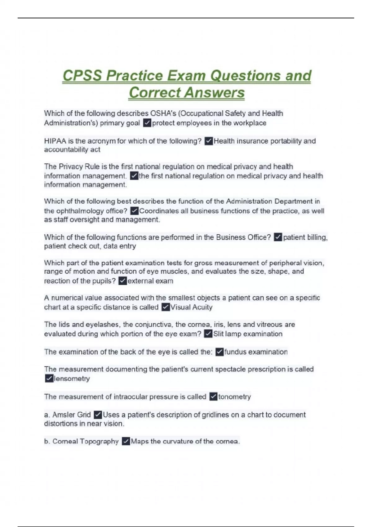 CPSS Practice Exam Questions and Correct Answers