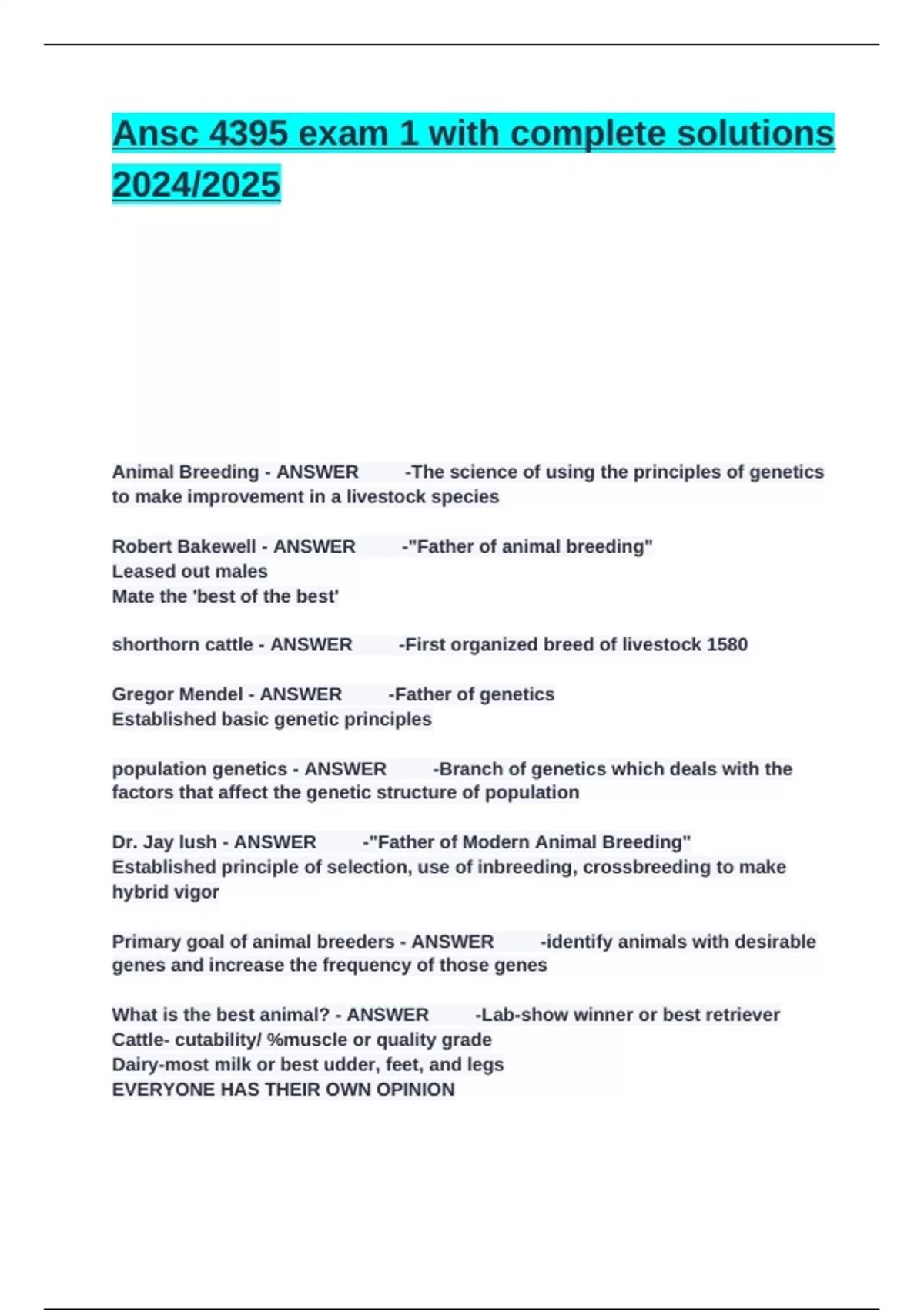 Animal Breeding - ANSWER✔️ ✔-The