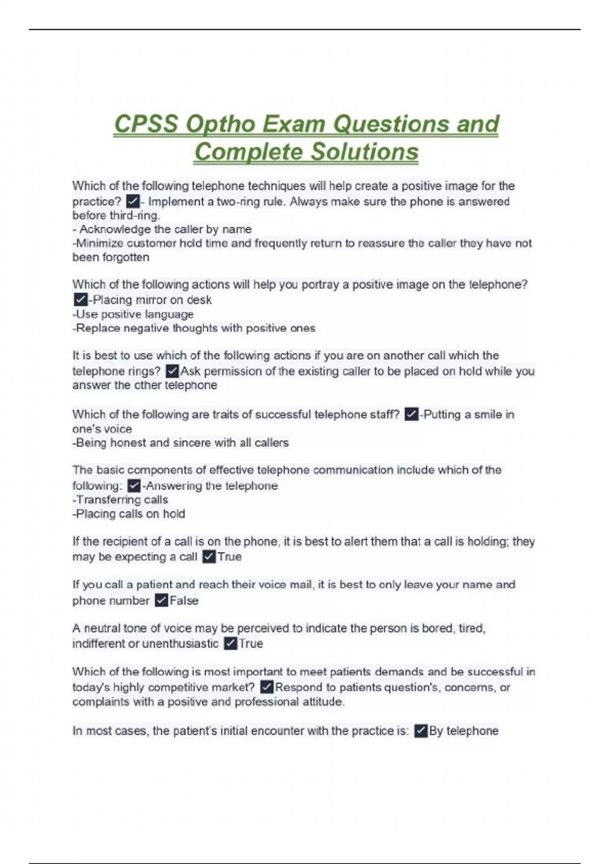 Which of the following telephone techniques will help create a positive image for the practice? - Implement a two-ring rule. Always make sure the phone is answered before third-ring. - Acknowledge the caller by name -Minimize customer hold time and frequently return to reassure the caller they have not been forgotten Which of the following actions will help you portray a positive image on the telephone? -Placing mirror on desk -Use positive language -Replace negative thoughts with positive ones It is best to use which of the following actions if you are on another call which the telephone rings? Ask permission of the existing caller to be placed on hold while you answer the other telephone Which of the following are traits of successful telephone staff? -Putting a smile in one's voice -Being honest and sincere with all callers The basic components of effective telephone communication include which of the following: -Answering the telephone -Transferring calls -Placing calls on hold If the recipient of a call is on the phone, it is best to alert them that a call is holding; they may be expecting a call True If you call a patient and reach their voice mail, it is best to only leave your name and phone number False A neutral tone of voice may be perceived to indicate the person is bored, tired, indifferent or unenthusiastic True Which of the following is most important to meet patients demands and be successful in today's highly competitive market? Respond to patients question's, concerns, or complaints with a positive and professional attitude. In most cases, the patient's initial encounter with the practice is: By telephone An eye care provider licensed to diagnose and treat diseases of the eye, but unable to perform invasive eye surgery is an: Optometrist