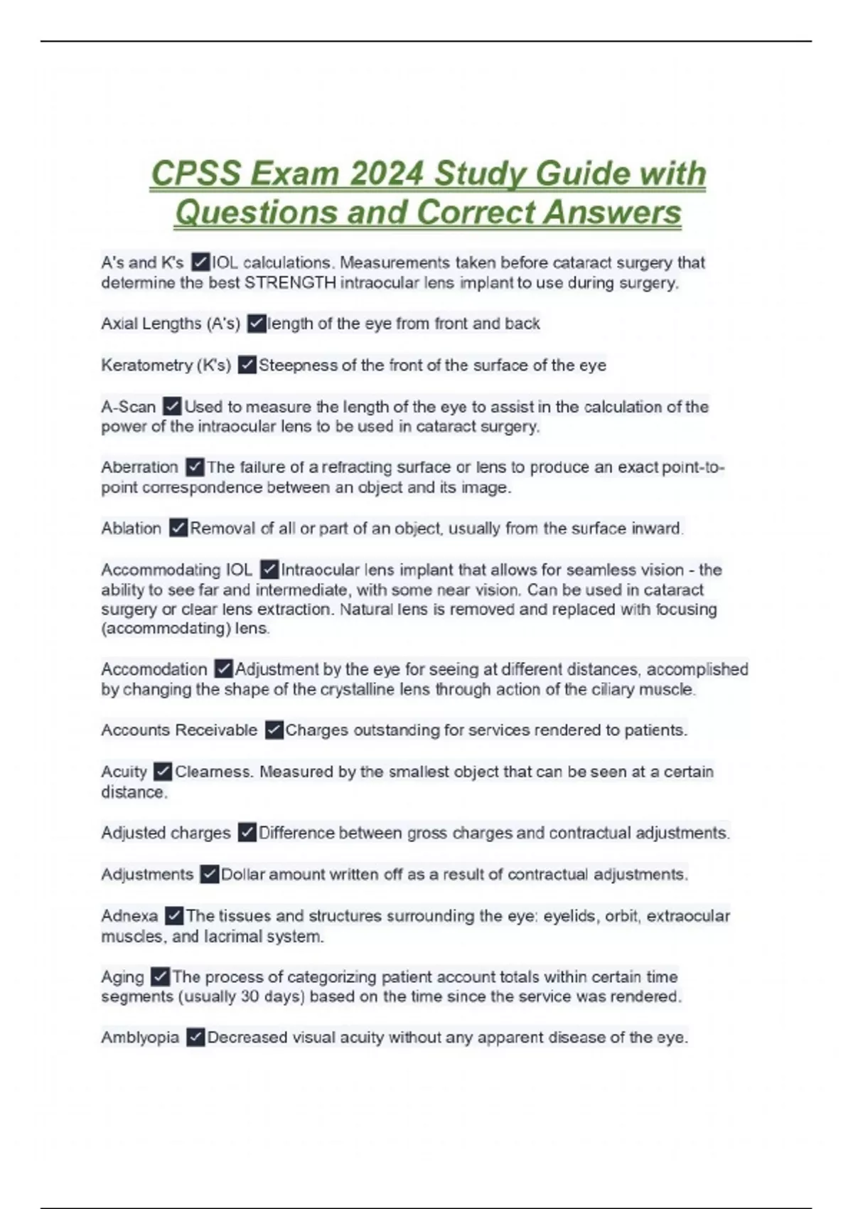 CPSS Exam 2024 Study Guide with Questions and Correct Answers