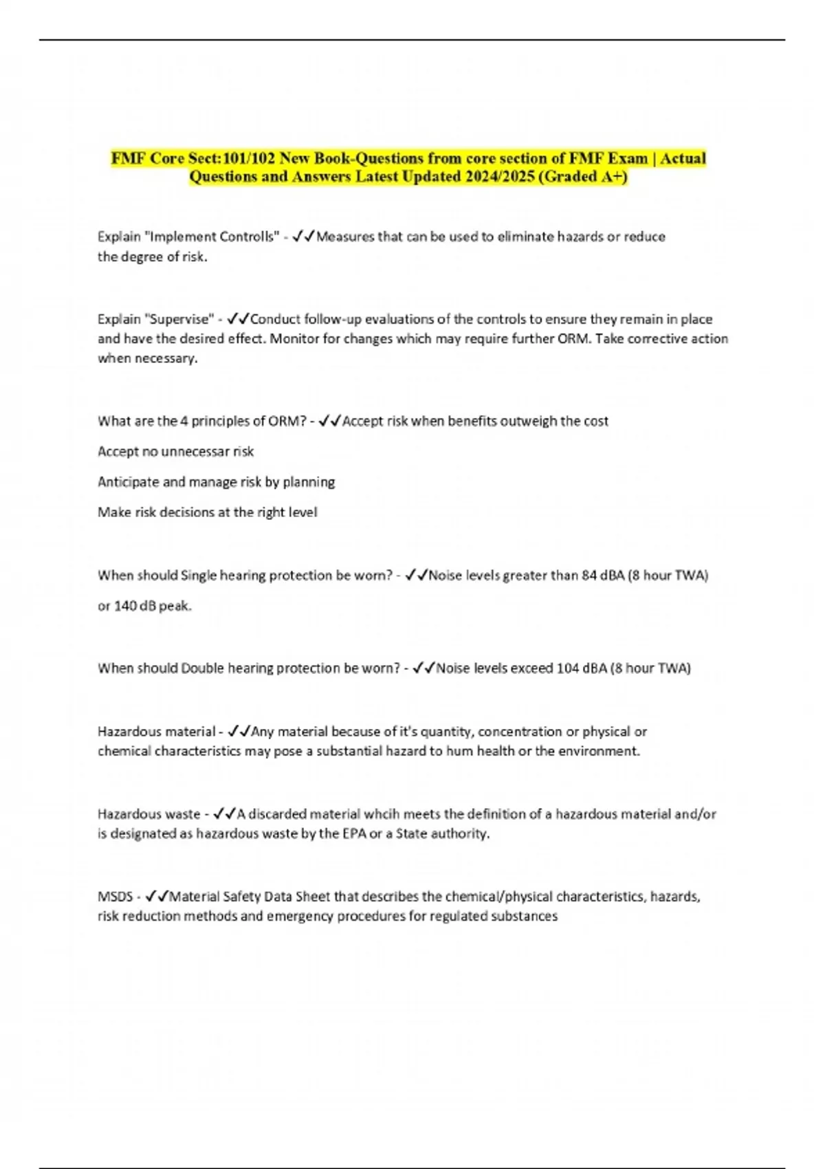 FMF Core Sect:101/102 New Book-Questions from core section of FMF Exam | Actual Questions and Answers Latest Updated 2024/2025 (Graded A+)