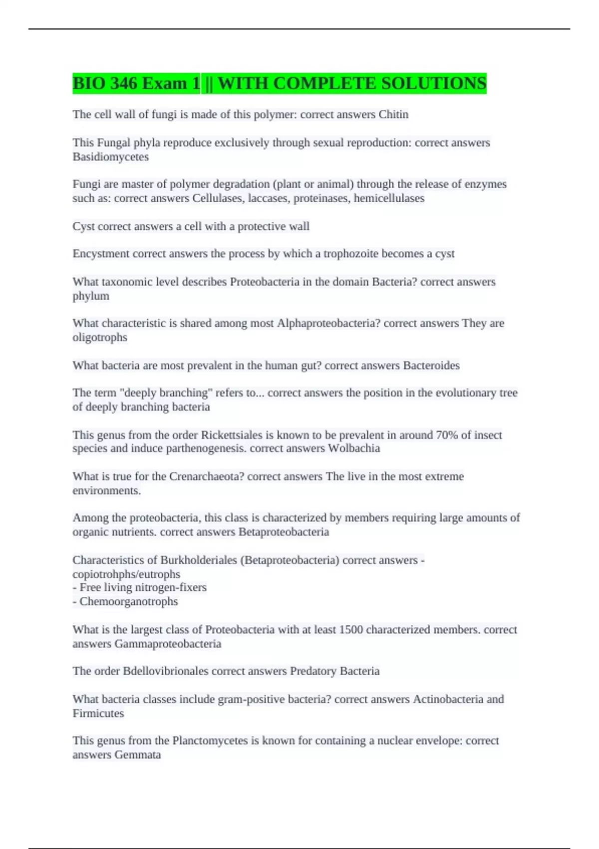 The order Bdellovibrionales correct answers Predatory Bacteria