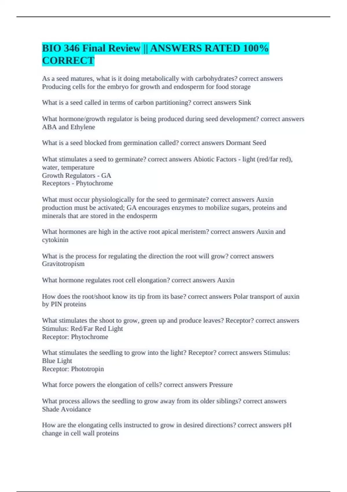 BIO 346 Final Review || ANSWERS RATED 100% CORRECT