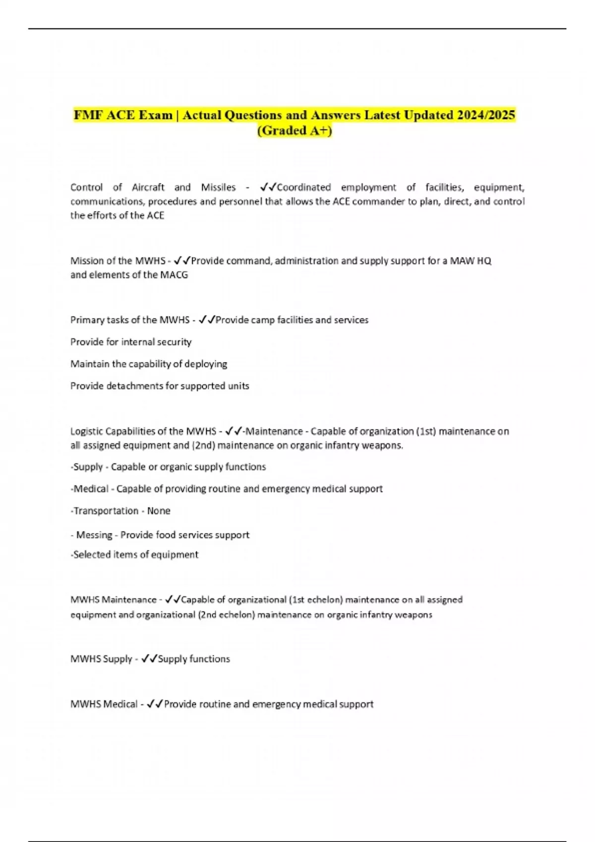 FMF ACE Exam | Actual Questions and Answers Latest Updated 2024/2025 (Graded A+)