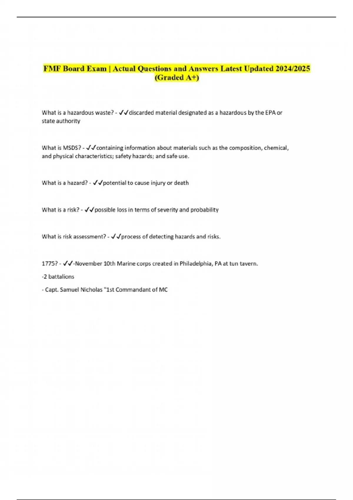 FMF Board Exam | Actual Questions and Answers Latest Updated 2024/2025 (Graded A+)