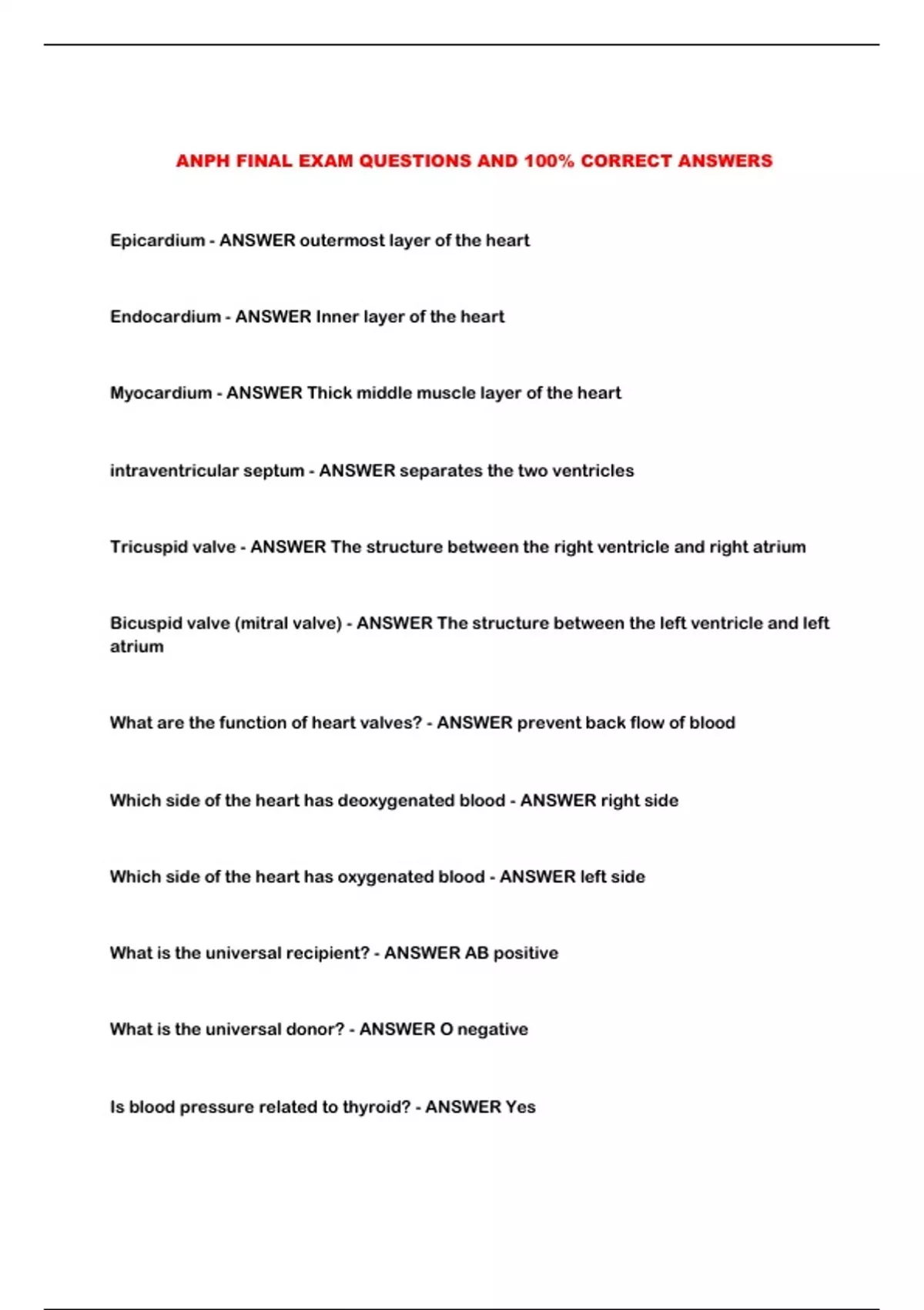 ANPH FINAL EXAM QUESTIONS AND 100% CORRECT ANSWERS