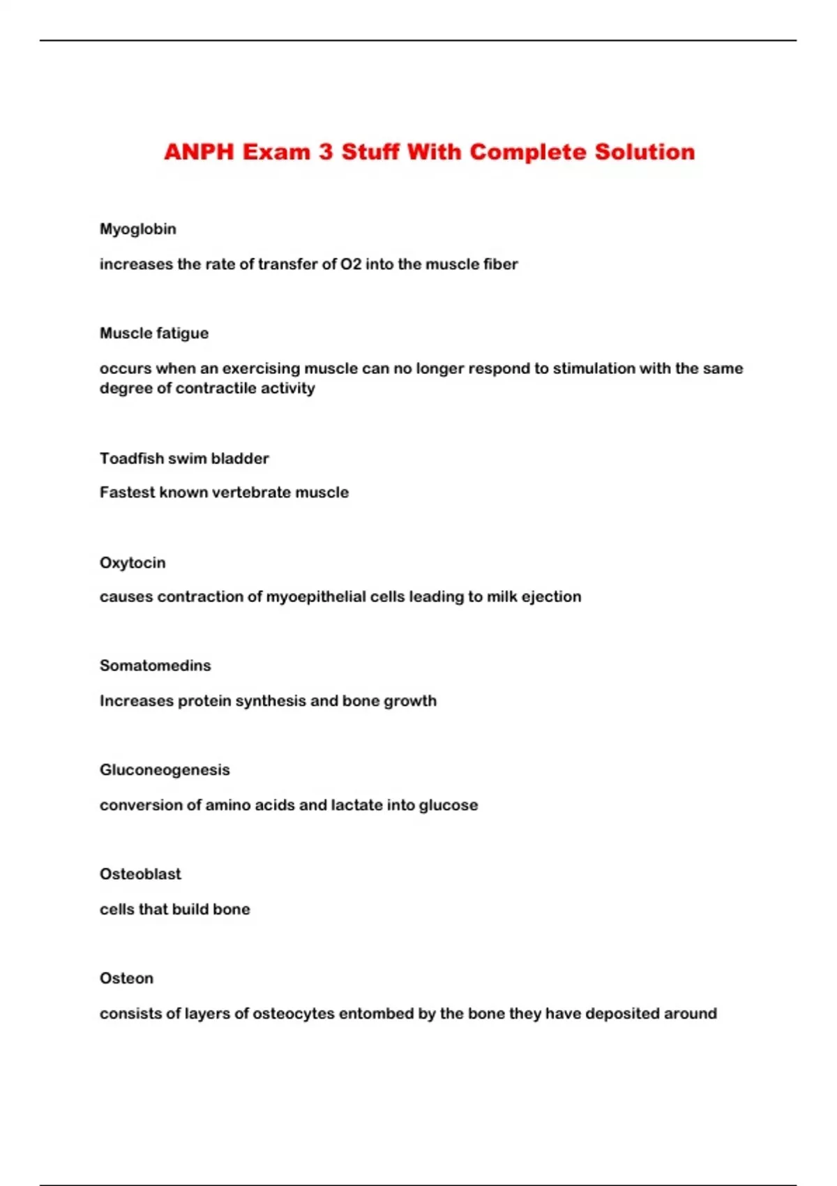 ANPH Exam 3 Stuff With Complete Solution...