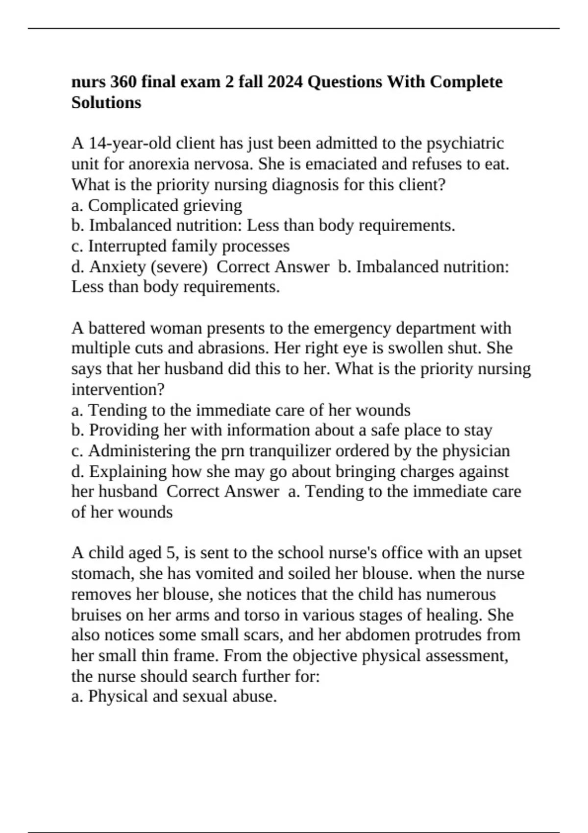 d. Anxiety (severe) Correct Answer b. Imbalanced nutrition: