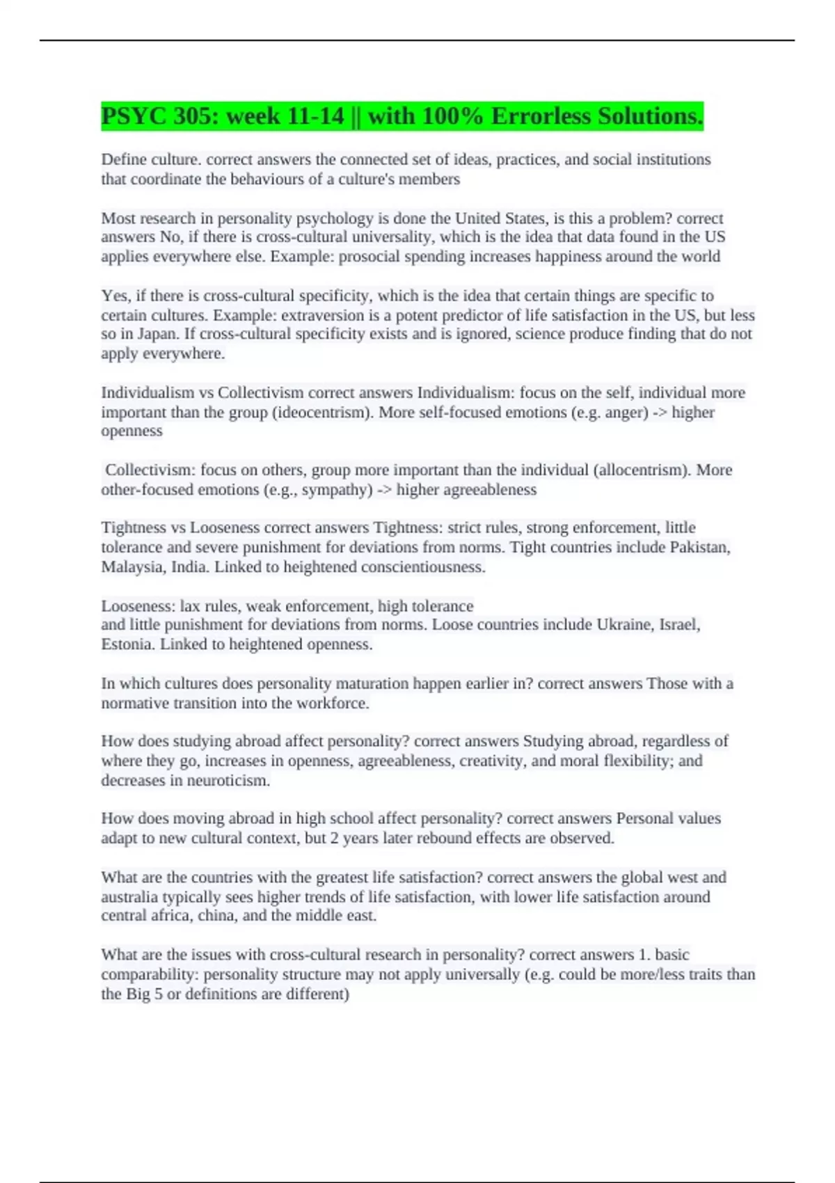 Individualism vs Collectivism correct answers Individualism: focus on the self, individual more