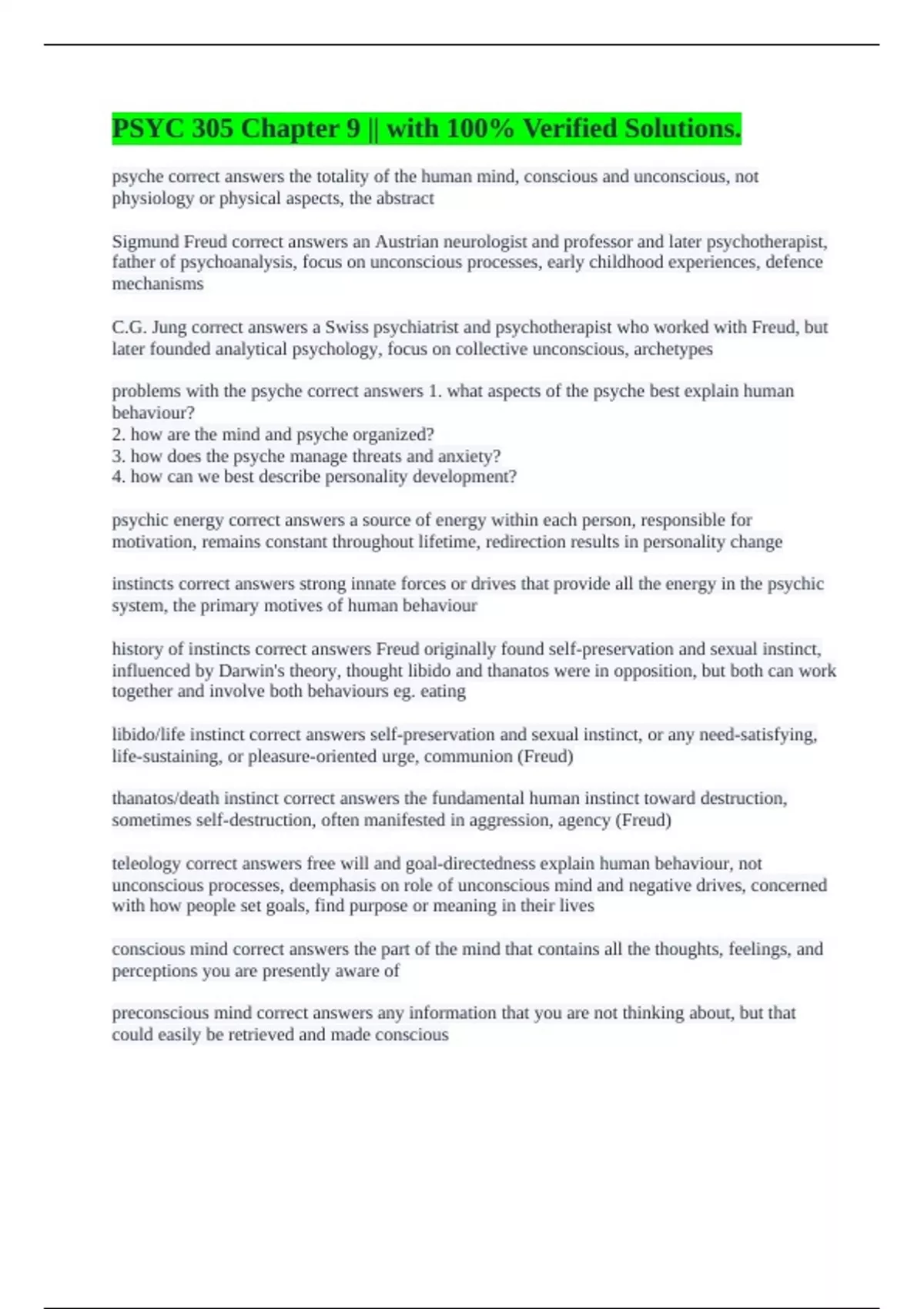 problems with the psyche correct answers 1. what aspects of the psyche best explain human