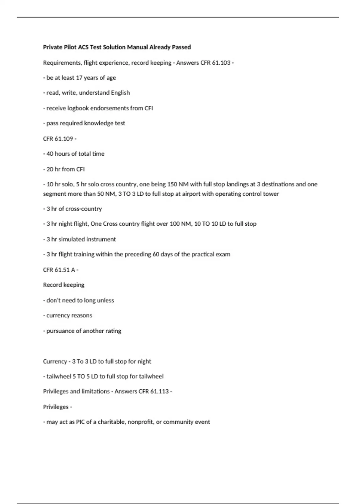 Requirements, flight experience, record keeping - Answers CFR 61.103 -