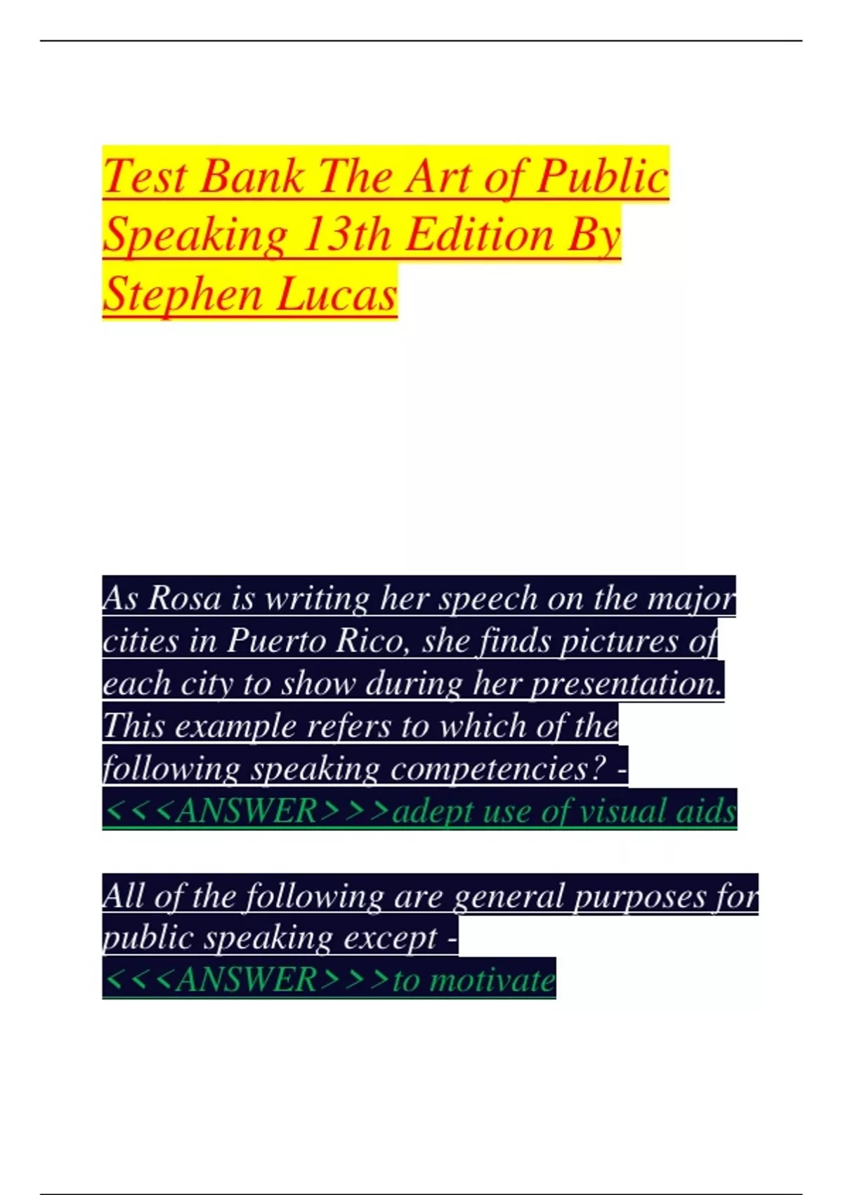 Test Bank The Art of Public Speaking 13th Edition By Stephen Lucas